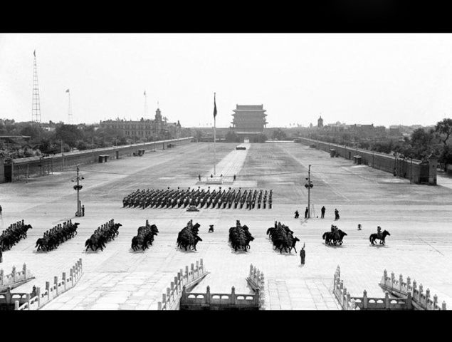1950年10月1日,中国人民解放军骑兵部队通过天安门广场。在这一年的阅兵式上,1900多匹战马组成的骑兵大队是一大看点。" rel="/images/uploadsallimgc1406261403N4C5450Z-1O27.jpg"/>